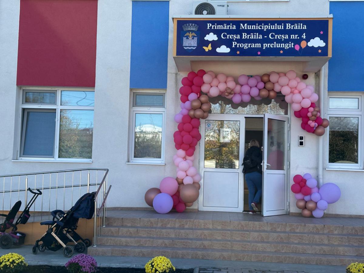 Luni, 27 octombrie 2025, Primăria Municipiului Brăila a inaugurat Creșa nr. 4, o investiție impresionantă care îmbină viziunea europeană cu implicarea locală. Noua unitate, situată într-o zonă cu densitate mare de tineri părinți, vine în sprijinul familiilor din cartierele Viziru, Buzăului și Radu Negru, oferind condiții de top pentru cei 154 de copii, cu vârste între 4 luni și 2 ani și 11 luni, înscriși la acest moment. Prin calitatea dotărilor, arhitectura adaptată nevoilor copiilor și standardele de siguranță implementate, Creșa nr. 4 este considerată una dintre cele mai moderne instituții de acest tip. Construcția aflată pe Strada Nicolae Titulescu, nr. 118, pe un teren de 2.208 mp., a fost realizată cu fonduri europene în valoare de 1.387.000 de euro, la care s-au adăugat 250.000 de euro din bugetul local pentru dotări ultramoderne.