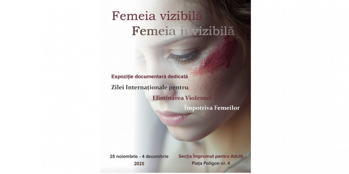 • expoziția este dedicată Zilei Internaționale pentru Eliminarea Violenței asupra Femeilor și va putea fi vizitată până pe 4 decembrie 2025 inclusiv, la Secția Împrumut Carte pentru Adulți