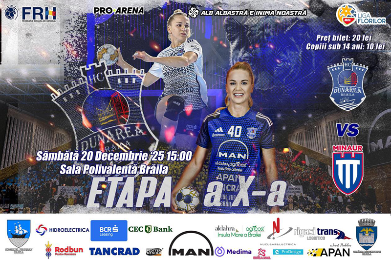 Sâmbătă, 20 decembrie, avem handbal din Liga Florilor în Polivalentă: HC Dunărea Brăila - CS Minaur Baia Mare
